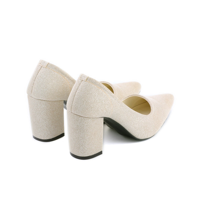 The Glimmer Cream women’s court shoes feature a glitter upper that catches the light beautifully, offering a stylish and contemporary look. With a trendy design and a sturdy 3-inch block heel, these shoes provide both elegance and stability, making them ideal for formal events or stylish everyday wear. Crafted to combine comfort with a chic appearance, they are a refined choice for fashion-forward women.