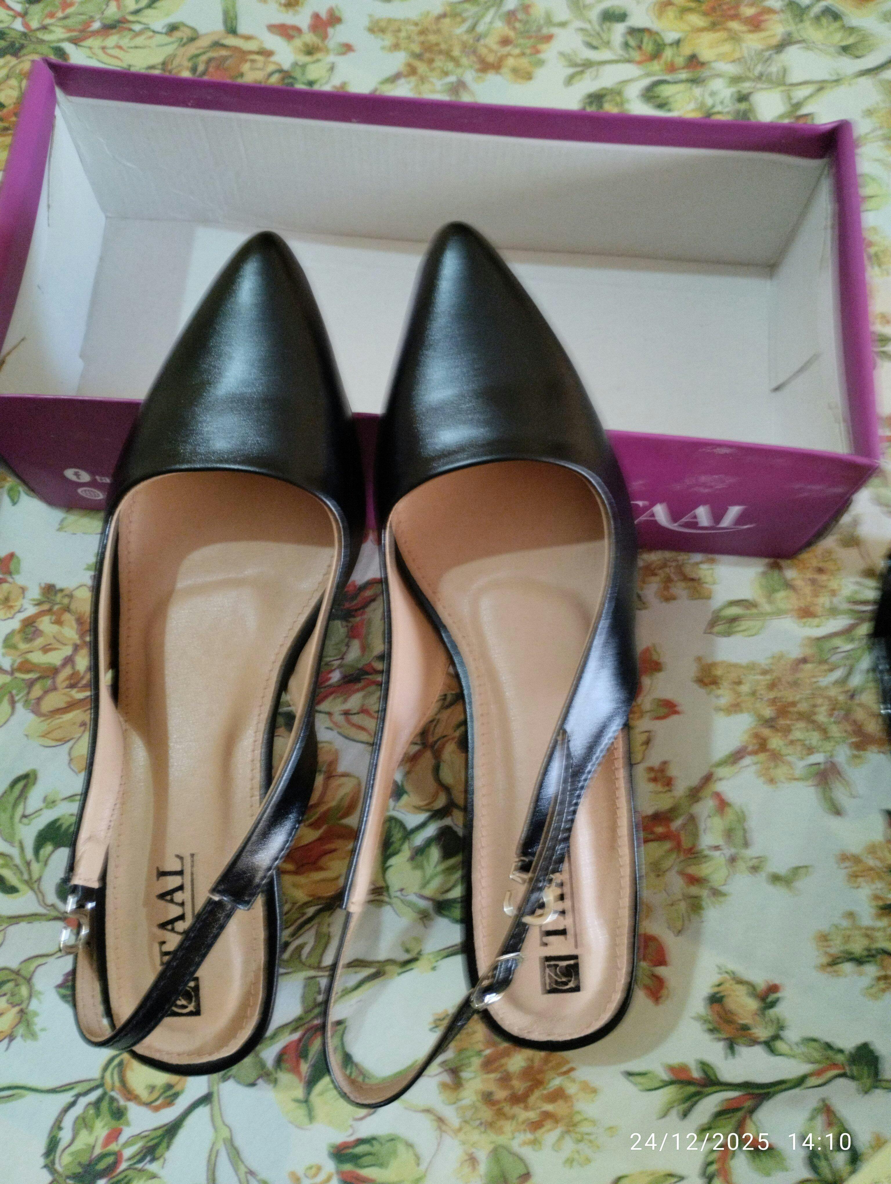 "TAAL has mastered the classic Pumps style. This pair is made of smooth synthetic leather and features the iconic sole. These are set on a block heel with a sling-back design. Whatever you wear them with, once you put them on, the world is yours. This wear-anywhere style is delicate and timeless, with a heel that you will return to for years to come. Your feet will be grateful that you chose these. "
